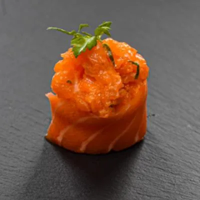 1 pièce - saumon, ciboulettes et oeufs de poissons | ||